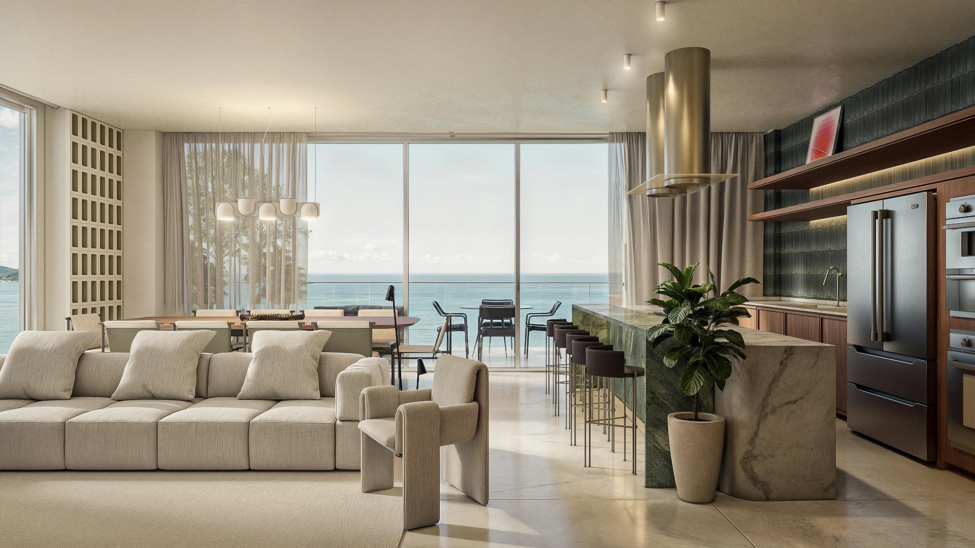Nas áreas privativas do Vedá, cada espaço reflete a essência do viver com propósito. A luz entra com naturalidade, o mar se revela com delicadeza, e o silêncio organiza o tempo. Ambientes integrados, acabamentos elegantes e escolhas funcionais transformam o cotidiano em equilíbrio. Um lar que nutre corpo, mente e alma.